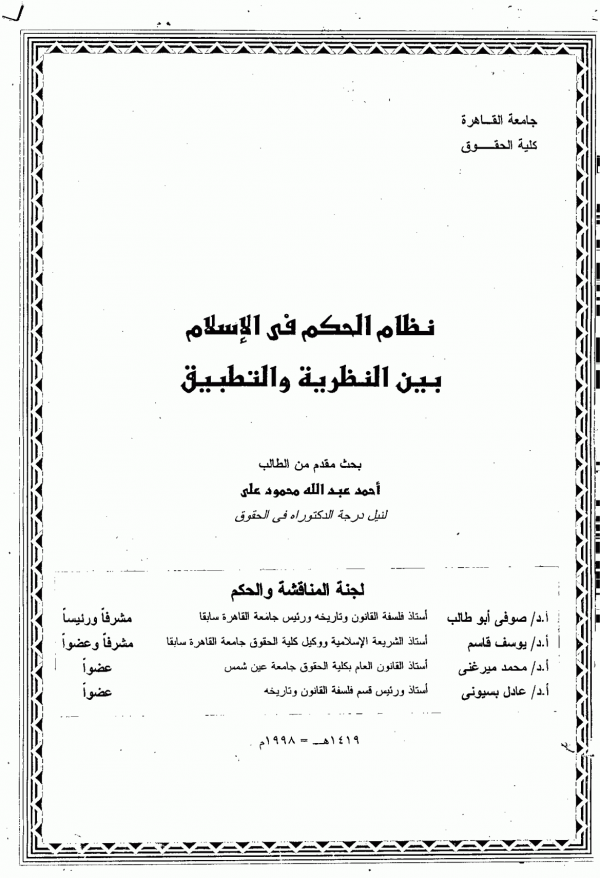 Dissertation note: اطروحة (دكتوراه) - جامعة القاهرة - كلية الحقوق - قسم القانون العام، 2003