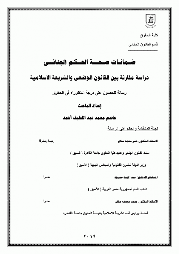 Dissertation note: أطروحة (دكتوراه)-جامعة القاهرة-كلية الحقوق-قسم القانون الجنائي، 2023