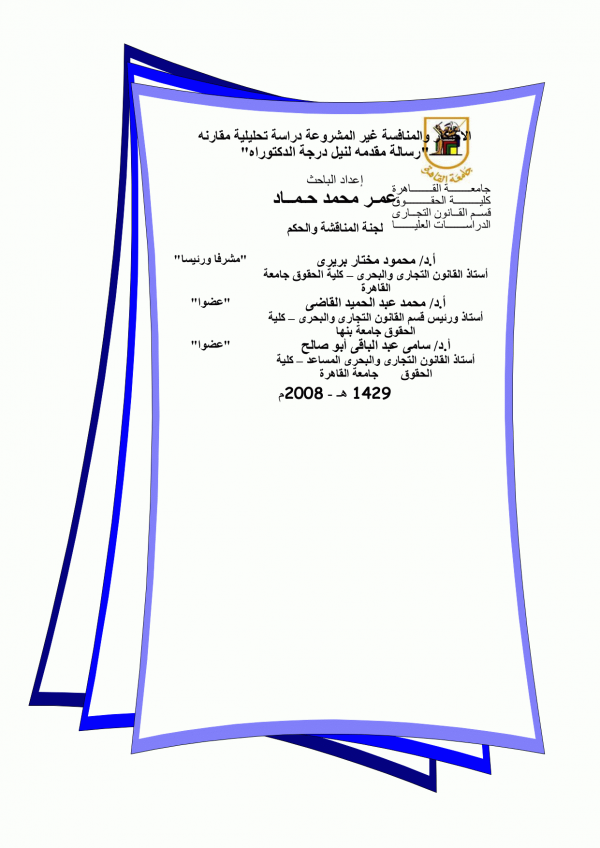 Dissertation note: اطروحة (دكتوراه) - جامعة القاهرة - كلية الحقوق - قسم القانون التجارى، 2010