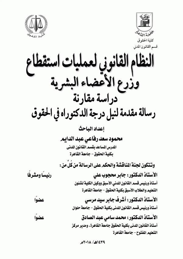 النظام القانونى لعمليات استقطاع و زرع الأعضاء البشرية : دراسة مقارنة / إعداد محمود سعد رفاعي عبدالدايم ؛ إشراف الأستاذ الدكتور جابر محجوب علي. by