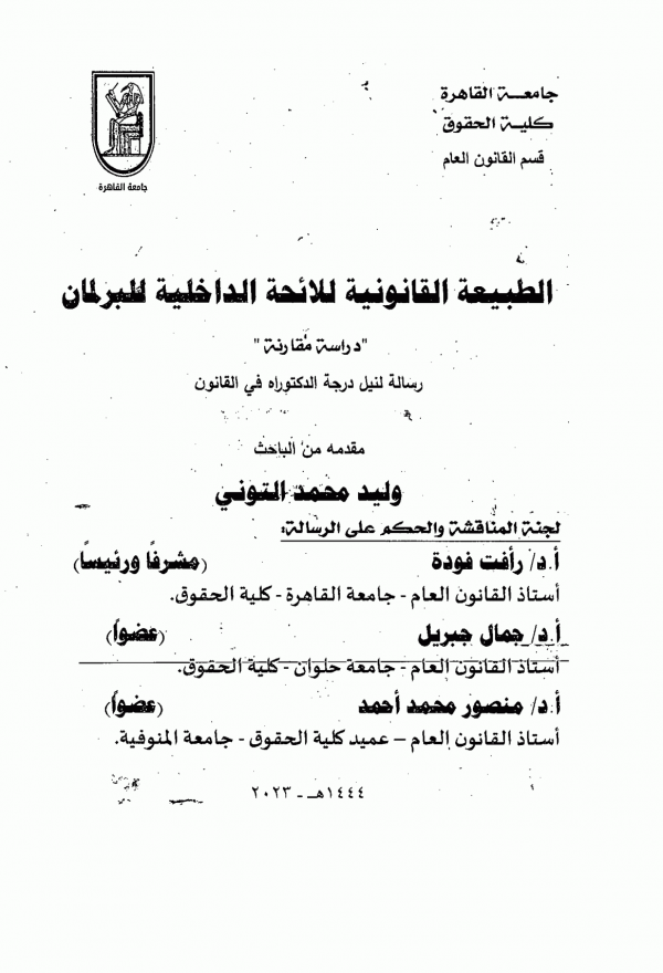 Dissertation note: اطروحة (دكتوراه) - جامعة القاهرة - كلية الحقوق - قسم القانون العام، 2019