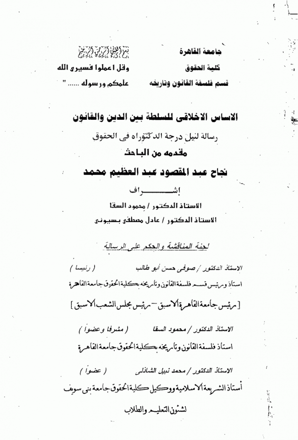 الأساس الأخلاقي للسلطة بين الدين والقانون / نجاح عبد المقصود عبد العظيم محمد by