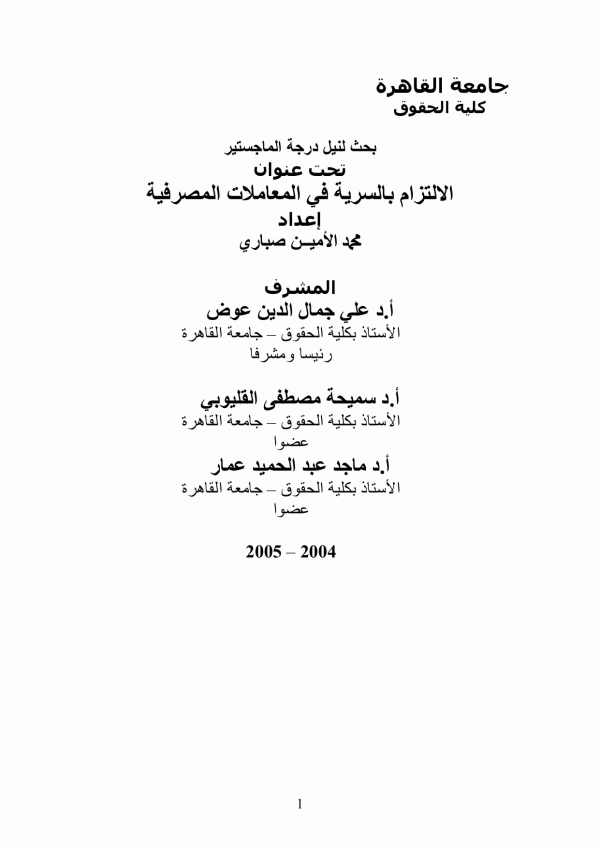 Dissertation note: اطروحة (ماجستير) - جامعة القاهرة - كلية الحقوق، 2005، قسم القانون التجاري