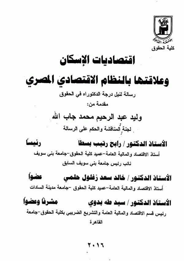 Dissertation note: أطروحة (دكتوراه) - جامعة القاهرة، كلية الحقوق، قسم المالية العامة والتشريع الضريبي 2016.