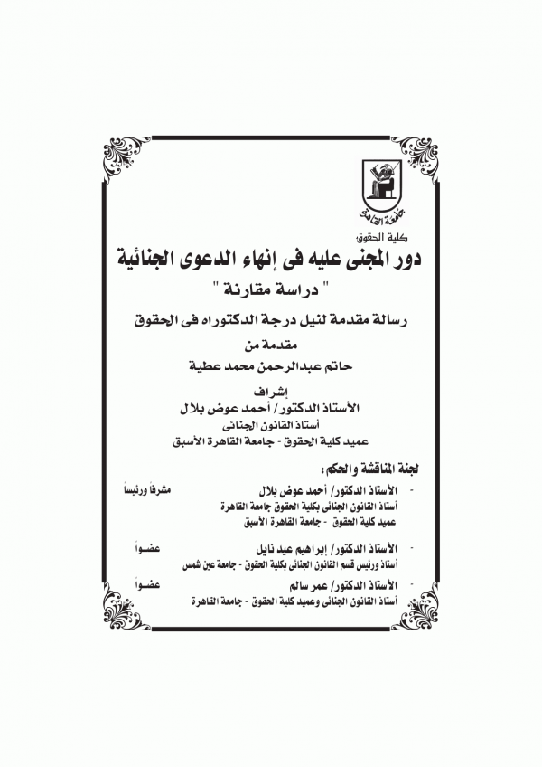 Dissertation note: أطروحة (دكتواره)-جامعة القاهرة-كلية الحقوق-قسم القانون الجنائي، 2022