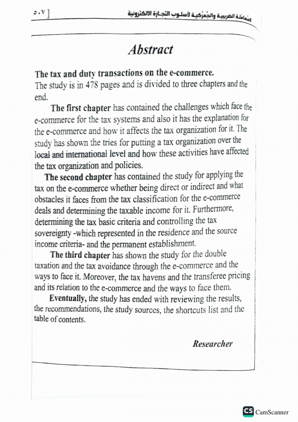 Dissertation note: أطروحة (دكتوراه) - جامعة القاهرة، كلية الحقوق، قسم المالية العامة والتشريع الضريبي 2012.