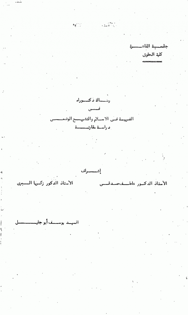 Dissertation note: اطروحة(دكتوراه) - جامعة القاهرة - كلية الحقوق - قسم المالية العامة والتشريع الضريبى، 1983