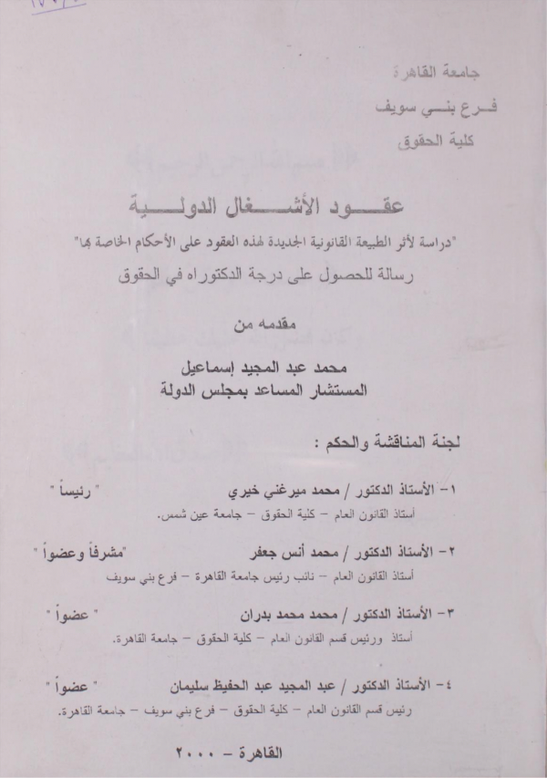 Dissertation note: أطروحة (دكتواره)-جامعة القاهرة-كلية الحقوق-قسم القانون العام، 2022