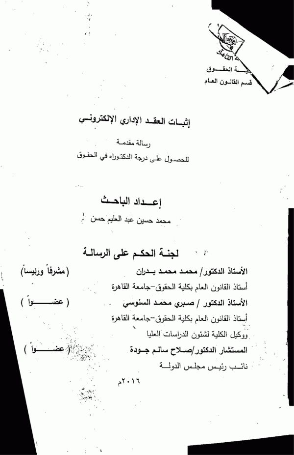 Dissertation note: اطروحة (دكتوراه) - جامعة القاهرة - كلية الحقوق - قسم القانون العام، 2016