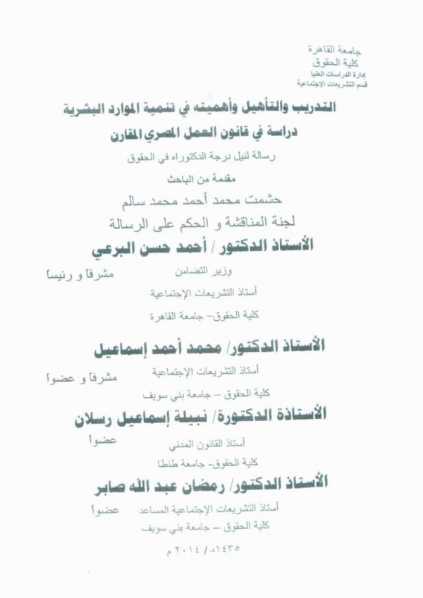 Other title: - Training, Qualifying And Its Importance In HR : Study In The Comparative Egyptian Labour Law
