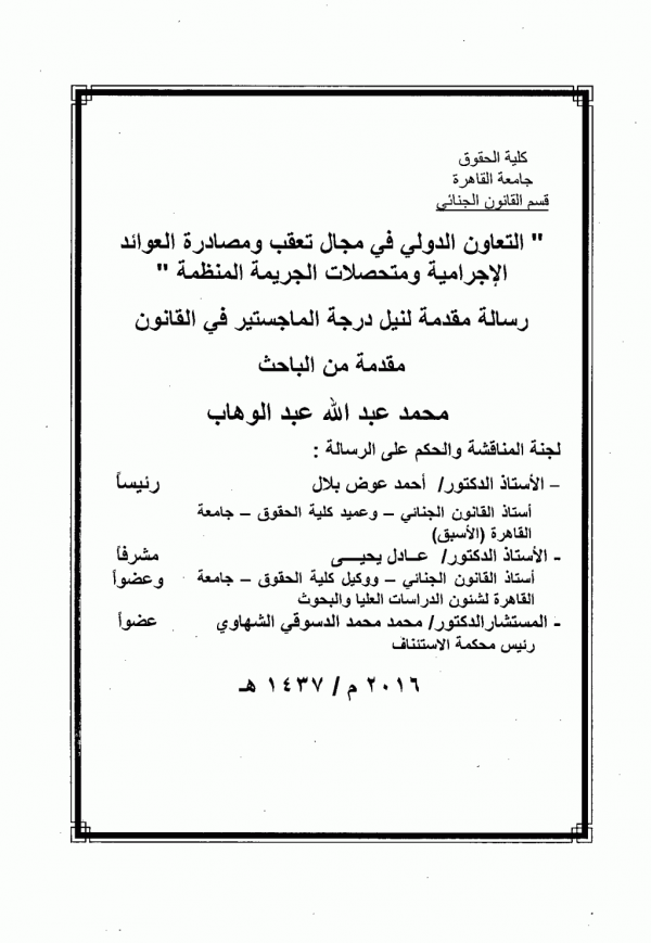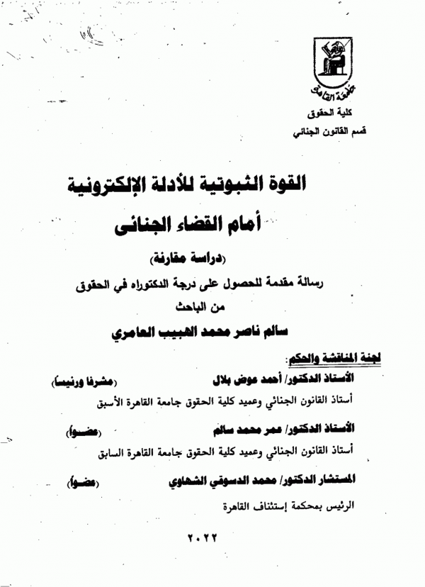 Dissertation note: اطروحة (دكتوراه) - جامعة القاهرة - كلية الحقوق - قسم القانون الجنائى، 2014