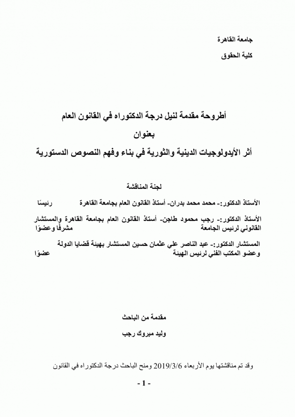 Dissertation note: اطروحة (دكتوراه) - جامعة القاهرة - كلية الحقوق - قسم التشريعات الاجتماعية، 2014