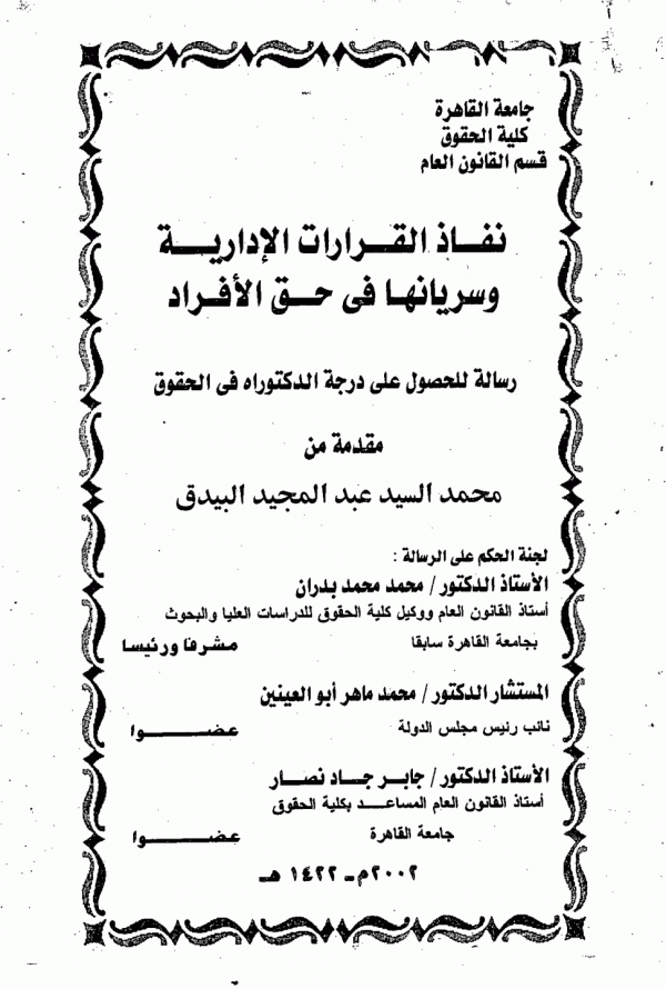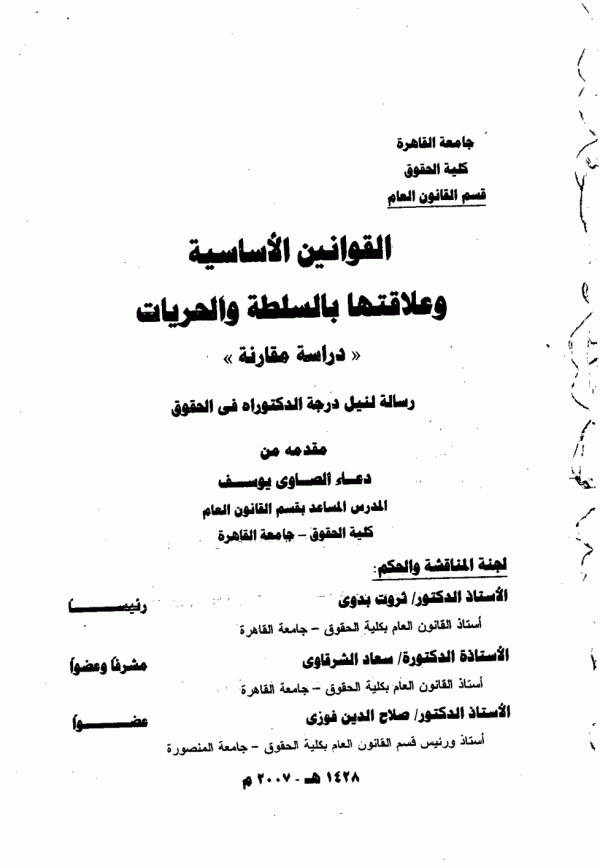 Dissertation note: أطروحة (ماجستير)-جامعة القاهرة-كلية الحقوق-قسم القانون العام، 2003