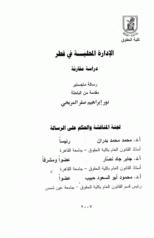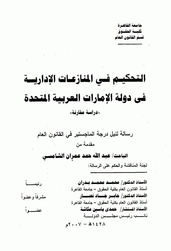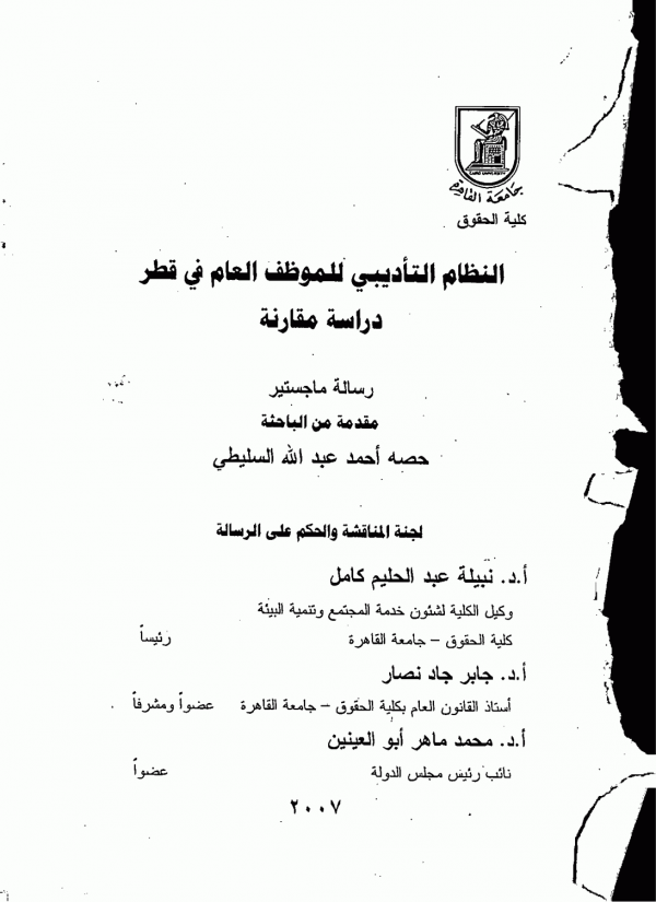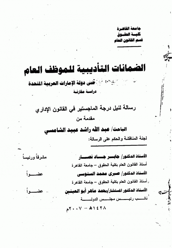 Dissertation note: اطروحة (ماجستير) - جامعة القاهرة - كلية الحقوق - قسم القانون العام، 2007