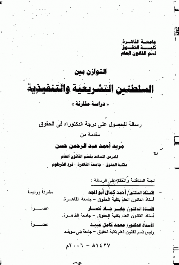 Dissertation note: اطروحة (دكتوراه) - جامعة القاهرة - كلية الحقوق - قسم القانون العام، 2006