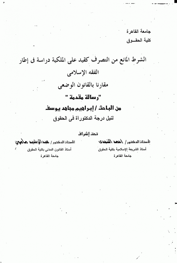 Dissertation note: أطروحة (دكتوراه)-جامعة القاهرة-كلية الحقوق-قسم الشريعة الإسلامية، 1980