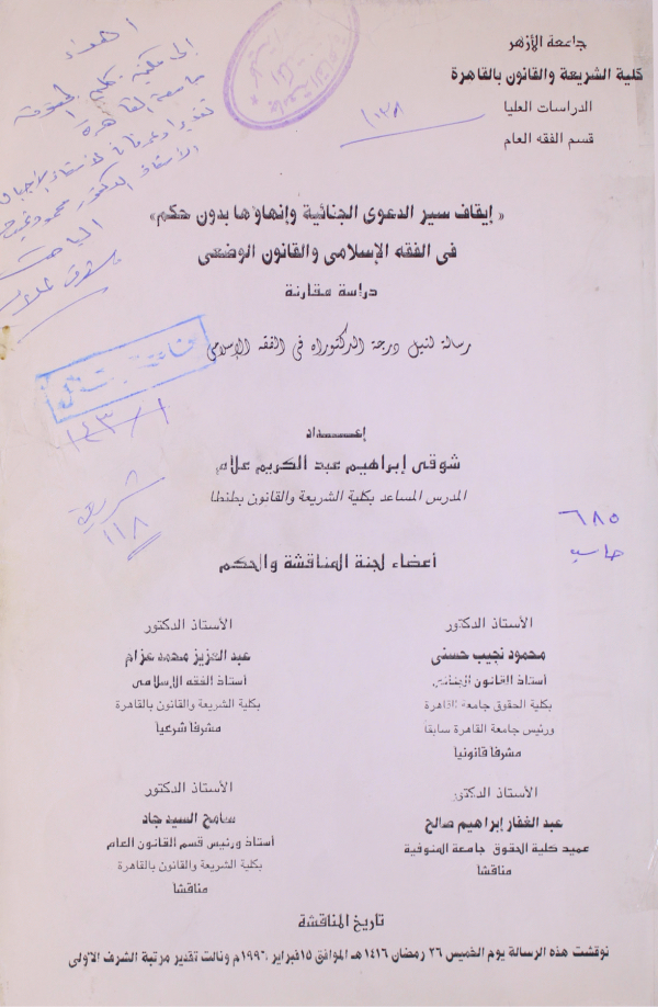 Dissertation note: أطروحة (دكتواره)-جامعة القاهرة-كلية الحقوق-قسم القانون الجنائي، 2023