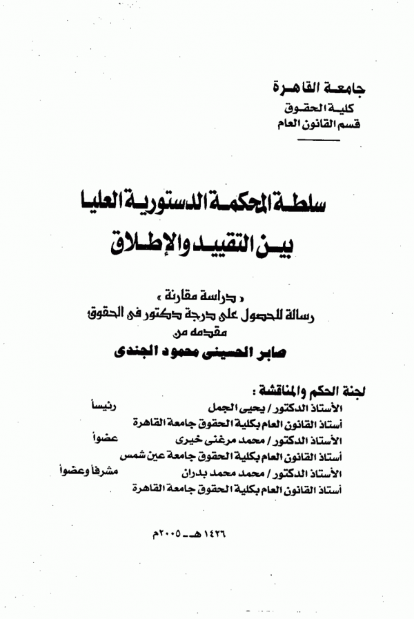 Dissertation note: اطروحة (دكتوراه) - جامعة القاهرة - كلية الحقوق - قسم القانون العام، 2007