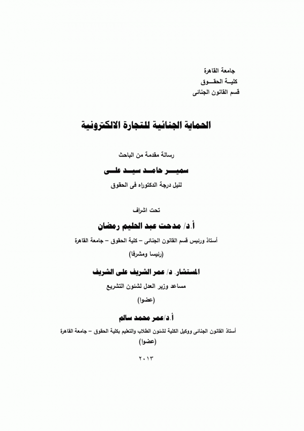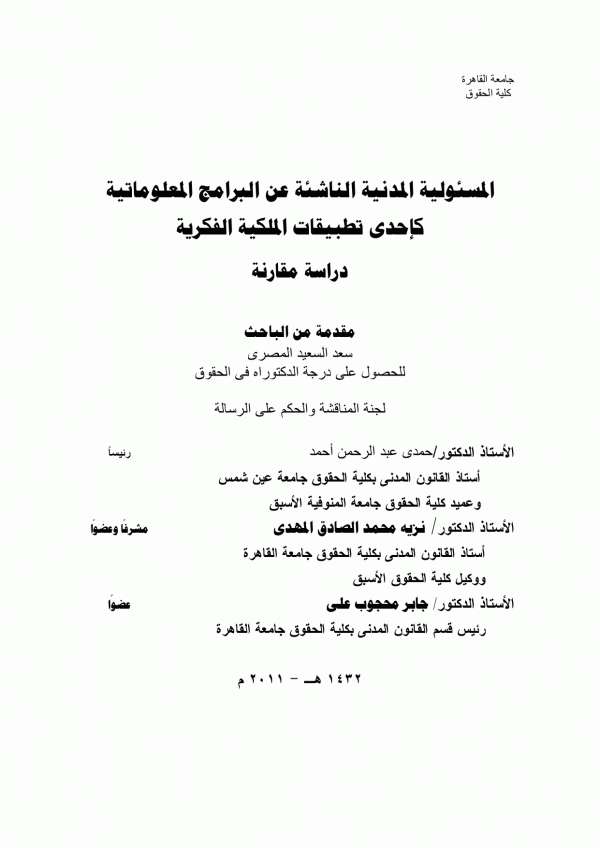 Dissertation note: أطروحة (دكتوراه) - جامعة القاهرة، كلية الحقوق، قسم القانون المدني 2010.