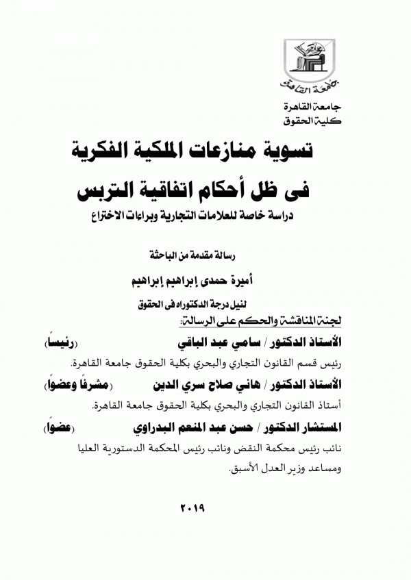 Dissertation note: اطروحة (دكتوراه) - جامعة القاهرة - كلية الحقوق - قسم القانون الدولى ، 2018