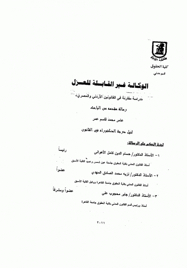 Other title: - Agency non-cancellable , A comparative study in the Jordanian and Egyptian laws