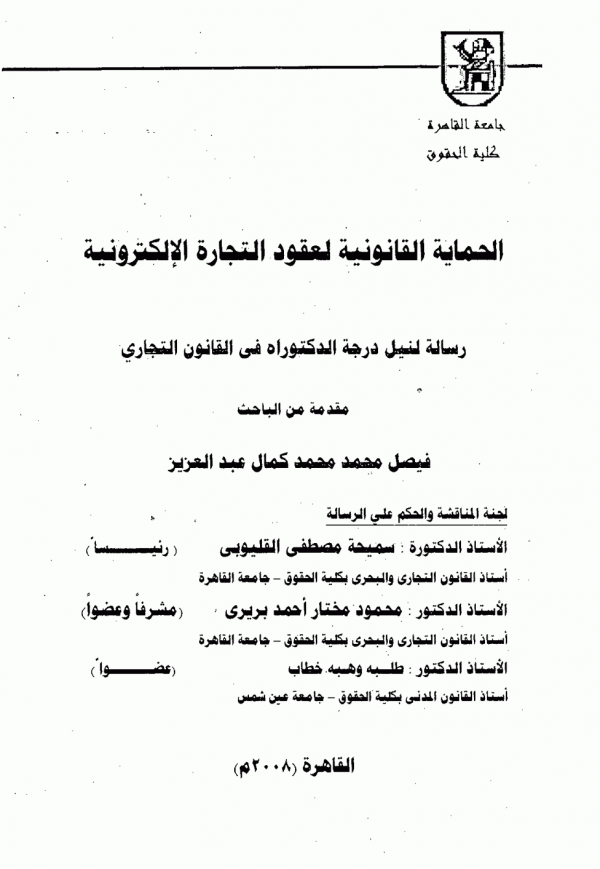 الحماية القانونية لعقود التجارة الالكترونية / فيصل محمد محمد كمال عبدالعزيز by