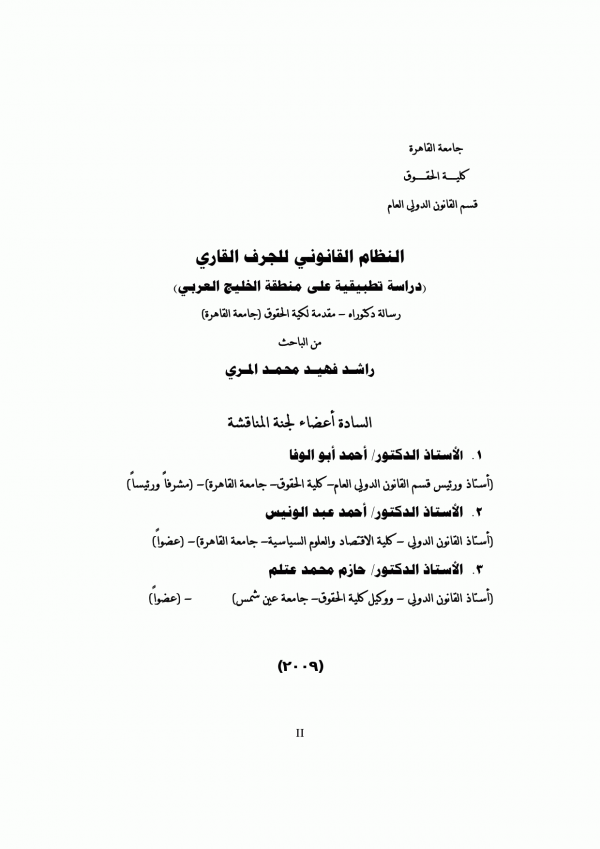 النظام القانونى للجرف القارى : دراسة تطبيقية على منطقة الخليج العربى / راشد فهيد محمد المرى by