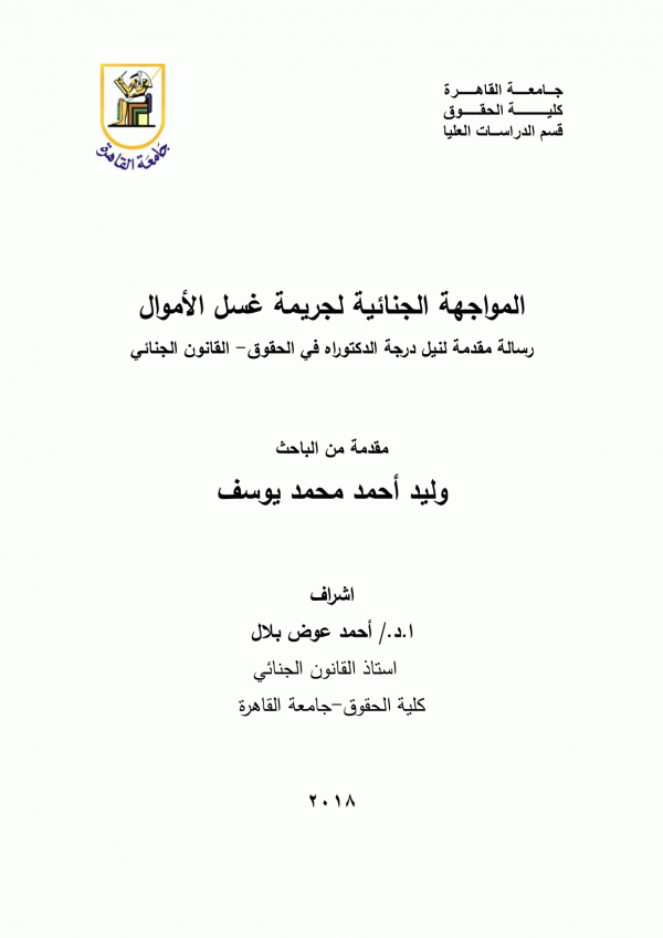 Dissertation note: أطروحة (دكتوراه)-جامعة القاهرة، 2018، قسم القانون الجنائي