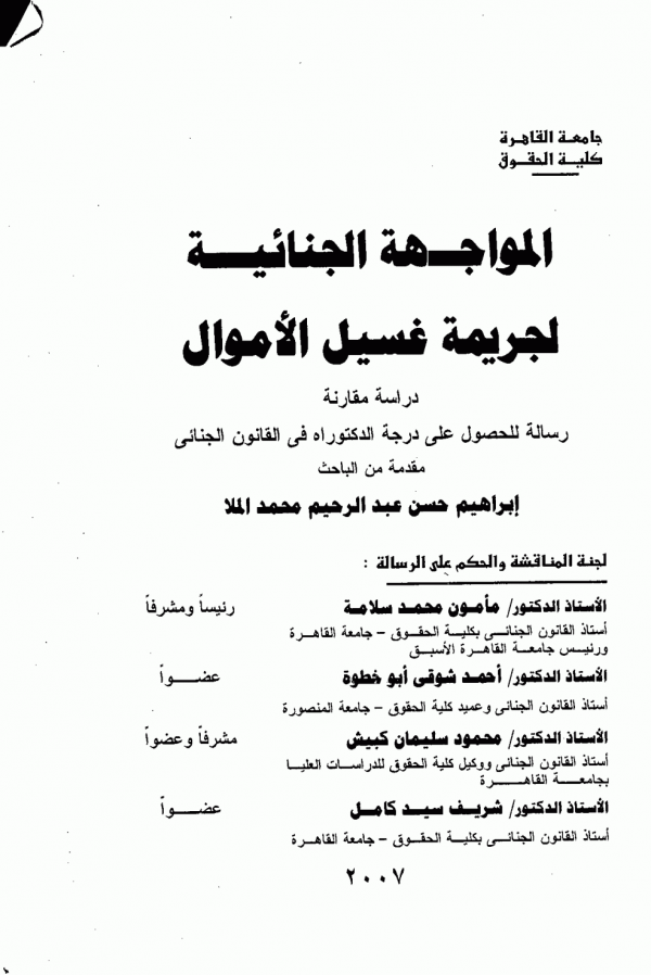 Dissertation note: اطروحة (ماجستير) - جامعة القاهرة - كلية الحقوق - قسم القانون الجنائى، 2007