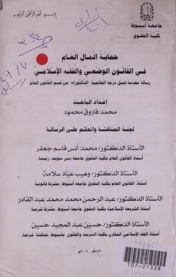 Dissertation note: أطروحة (دكتوراة)-جامعة أسيوط، كلية الحقوق، قسم القانون العام 2009