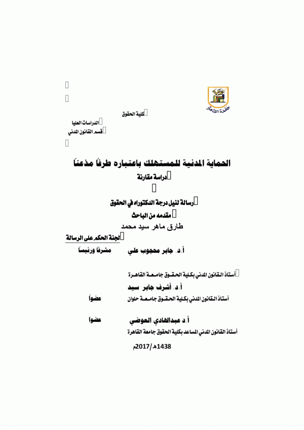 Dissertation note: أطروحة (دكتوراه)-جامعة القاهرة-كلية الحقوق-قسم القانون المدني، 2024