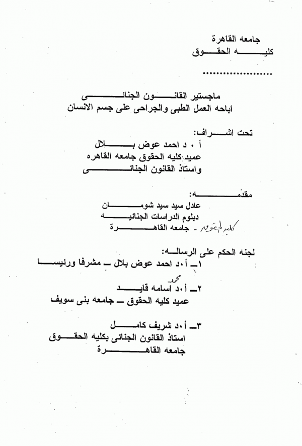 Dissertation note: اطروحة (ماجستير) - جامعة القاهرة - كلية الحقوق - قسم القانون الجنائى، 2003