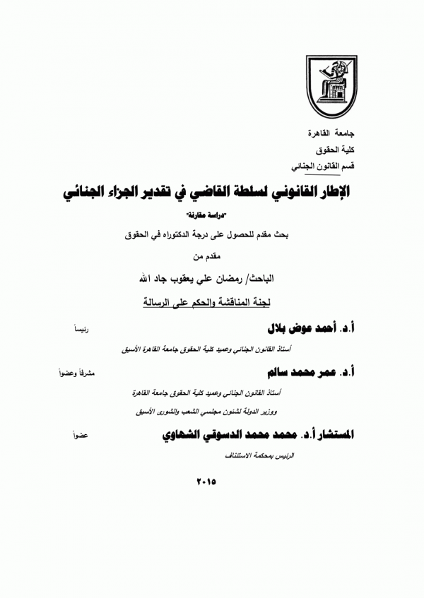 Dissertation note: اطروحة (دكتوراه) - جامعة القاهرة، كلية الحقوق، قسم القانون الجنائى 2015.