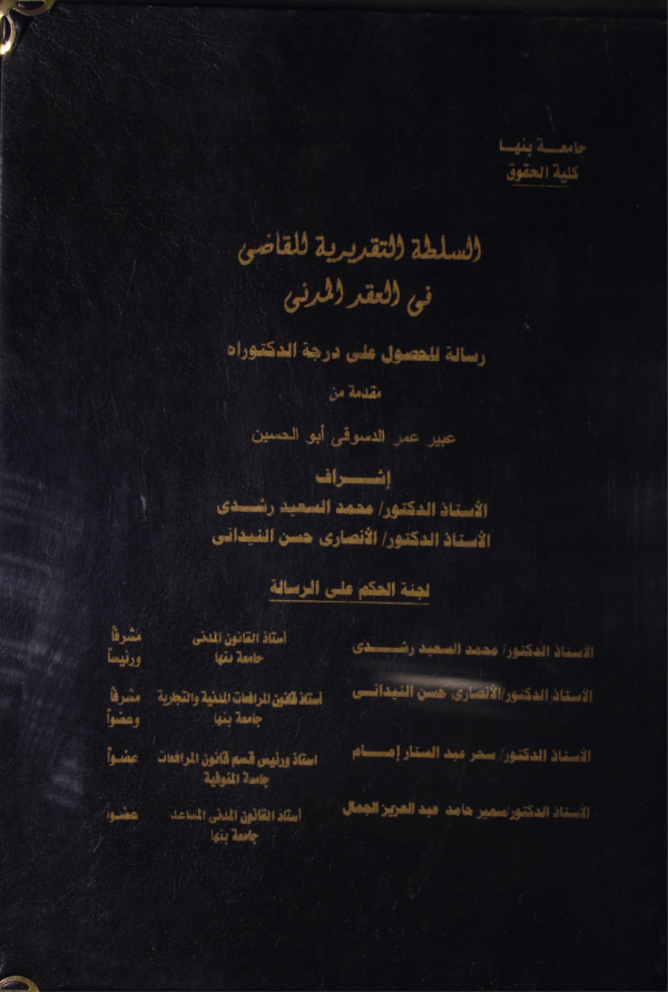 السلطة التقديرية للقاضى فى العقد المدنى / إعداد عبير عمر الدسوقى؛ اشراف محمد السعيد رشدى by