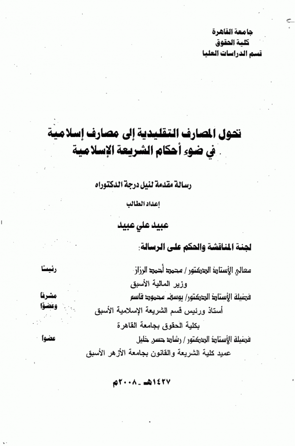 تحول المصارف التقليدية الى مصارف اسلامية فى ضوء احكام الشريعة الإسلامية / عبيد على عبيد by