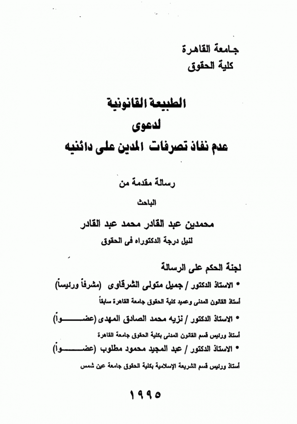 الطبيعة القانونية لدعوي عدم نفاذ تصرفات المدين علي دائنيه / محمدين عبدالقادر محمد عبدالقادر by