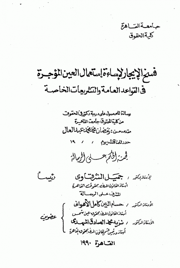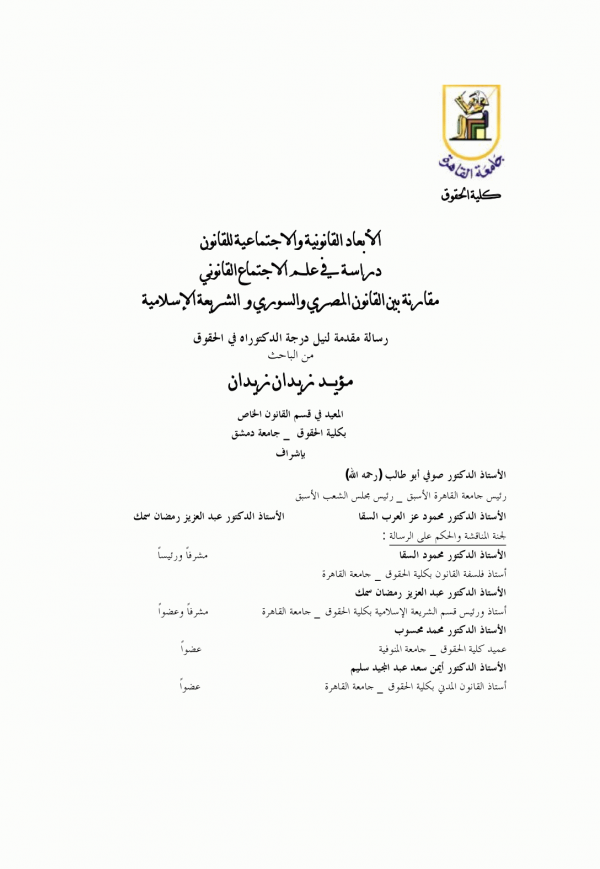 Dissertation note: اطروحة(دكتوراه) - جامعة القاهرة - كلية الحقوق - قسم القانون المدنى، 1992