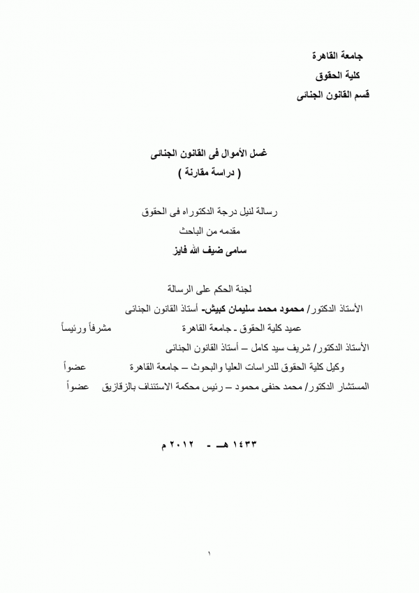 Dissertation note: اطروحة (ماجستير) - جامعة القاهرة - كلية الحقوق - قسم القانون الجنائى، 2008