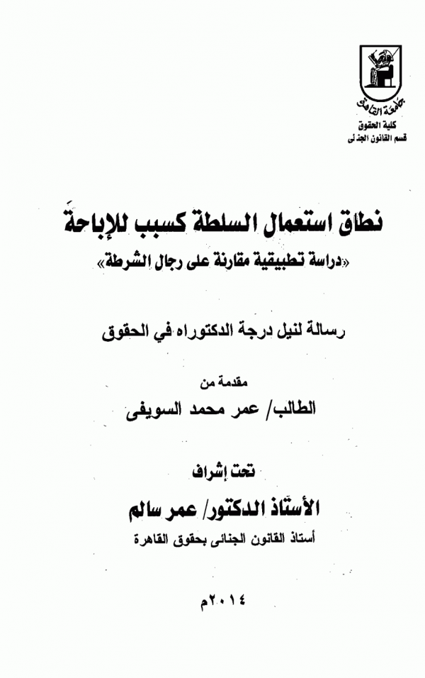 نطاق استعمال السلطة كسبب للإباحة : دراسة تطبيقية مقارنة على رجال الشرطة / عمر محمد السويفى by
