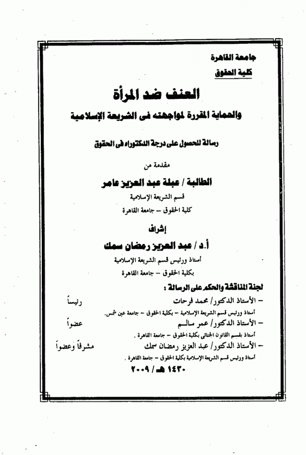 Dissertation note: اطروحة (دكتوراه) - جامعة القاهرة - كلية الحقوق - قسم الشريعة الاسلامية، 2009